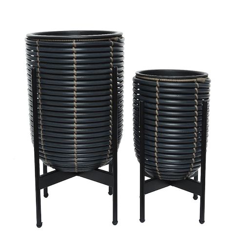 Aménagez un extérieur avec style grâce à ce lot de 2 cache-pots en polyrotin.
