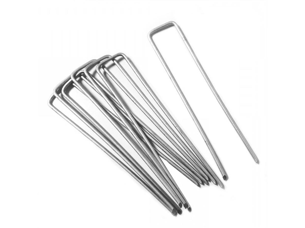 Pack de 10 agrafes sardine pour Gazon synthétique. En acier inoxydable, elles mesurent 15 cm de long et 4,5 cm de largeur, pour un diamètre de 3 mm pour les tiges.