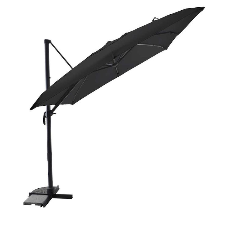 Profitez de l'ombre exactement où vous en avez besoin grâce à ce parasol déporté 3 x 3 m. Inclinable en 5 positions et rotatif à 360° grâce à sa base, il s'adapte à tous les moments de la journée.