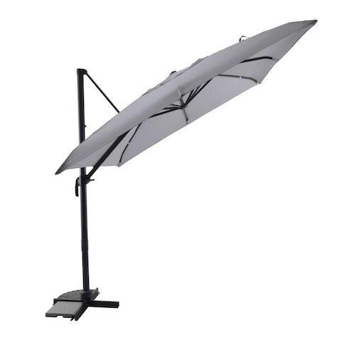 Profitez de l'ombre exactement où vous en avez besoin grâce à ce parasol déporté 3 x 3 m. Inclinable en 5 positions et rotatif à 360° grâce à sa base, il s'adapte à tous les moments de la journée.