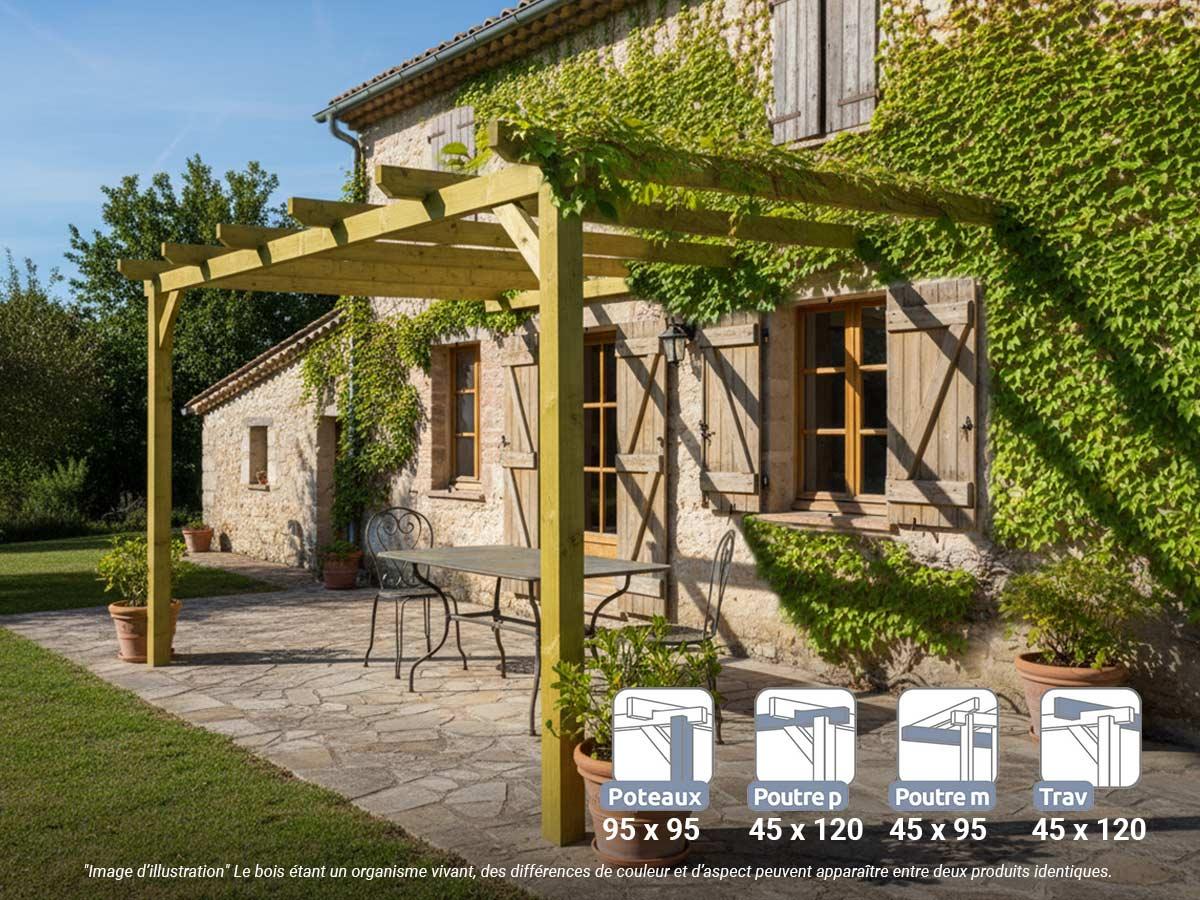 Pergola adossée en bois massif Narbonne 420 x 300 cm - Maderland
