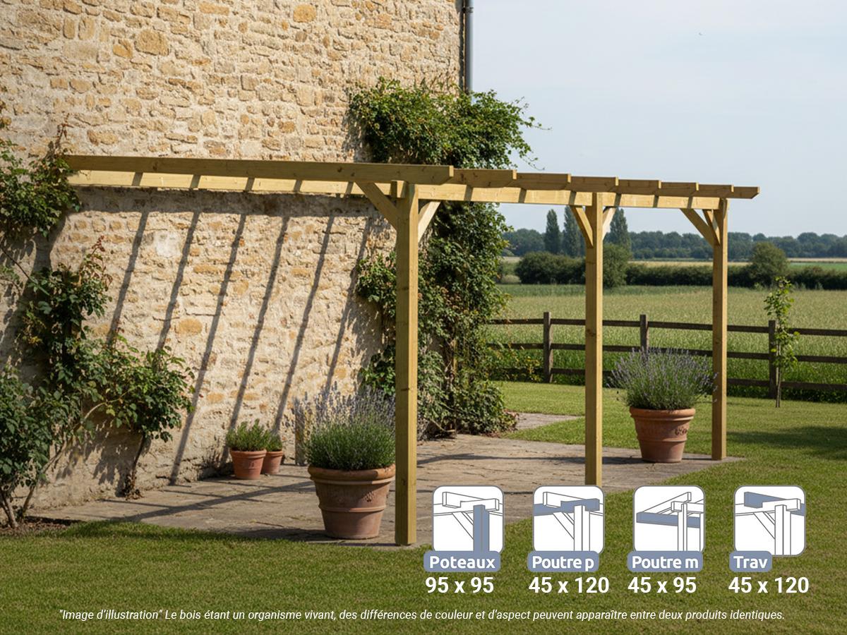 Pergola adossée en bois massif Narbonne 510 x 420 cm - Maderland