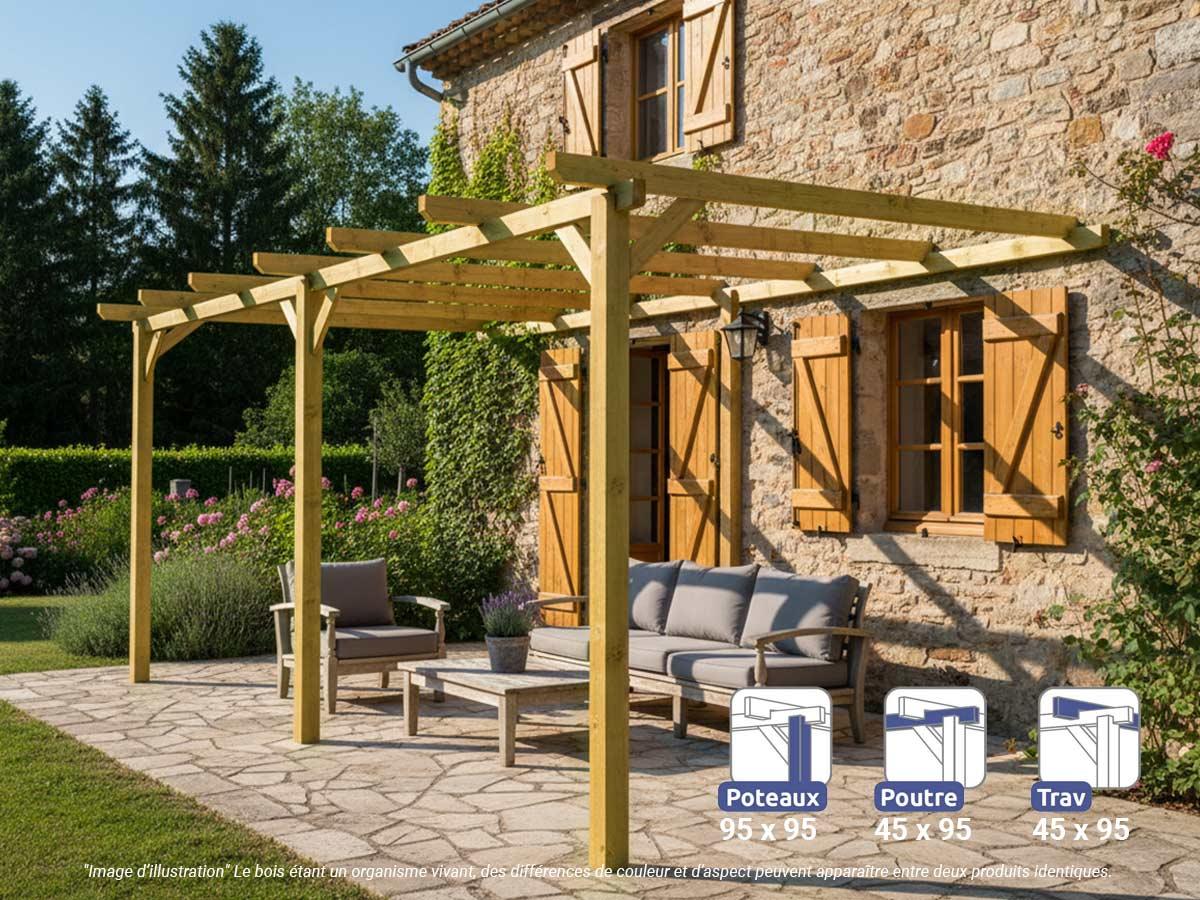 Pergola adossée en bois massif Orléans 510 x 300 cm - Maderland