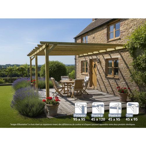 Pergola adossée en bois massif Saint-Denis 600 x 420 cm - Maderland