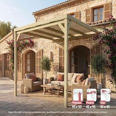 Le bois lamellé-collé utilisé dans cette pergola en bois se distingue comme un matériau plus résistant et ayant de meilleures performances que le bois massif, en raison de son processus de fabrication et de traitement, conforme à des normes strictes établies par l'UE.