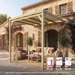 Pergola adossée en bois Montpellier 300 x 300 cm - Maderland