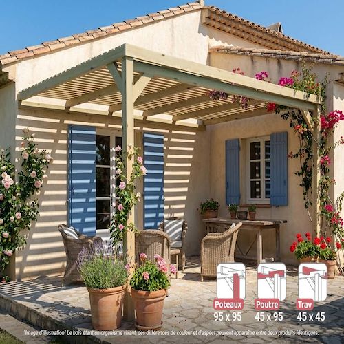 Pergola adossée en bois Montpellier 400 x 400 cm - Maderland