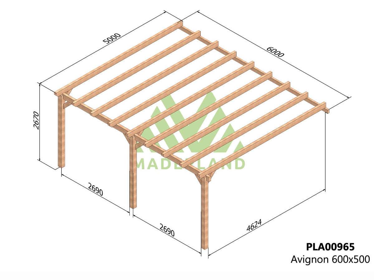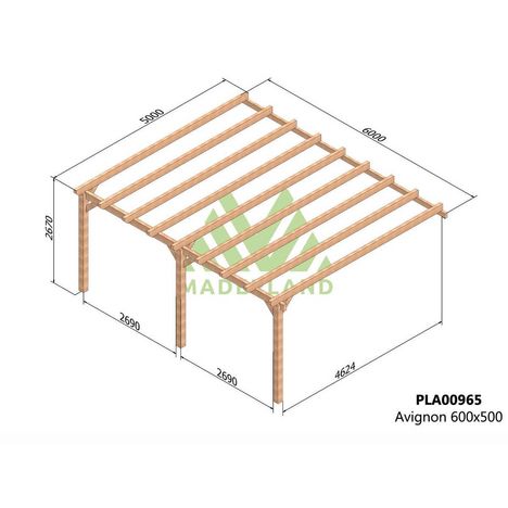 Pergola adossée en lamellé-collée Avignon 600 x 500 cm - Mardeland