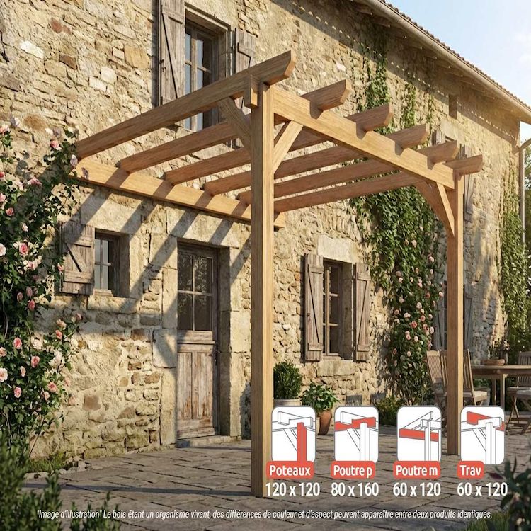 Pergola adossée en lamellé-collée Versailles 400 x 300 cm - Mardeland