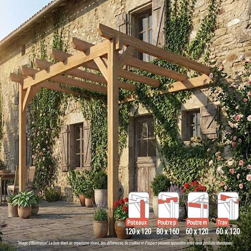Pergola adossée en lamellé-collée Versailles 400 x 400 cm - Mardeland