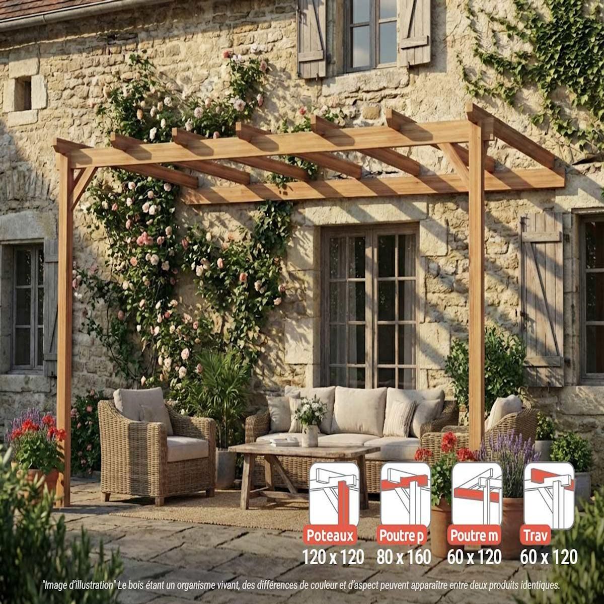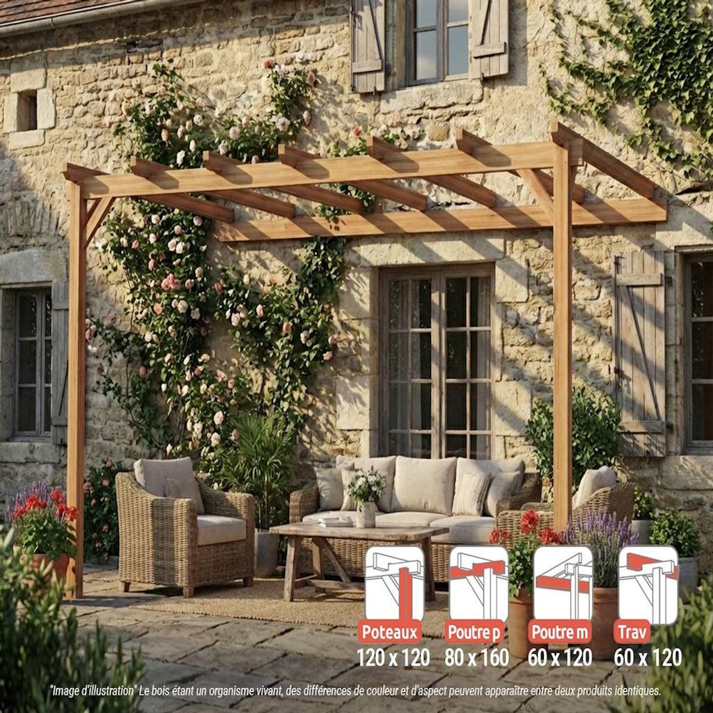 Pergola adossée en lamellé-collée Versailles 500 x 300 cm - Mardeland