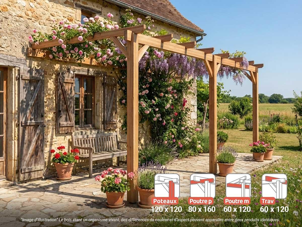 Pergola adossée en lamellé-collée Versailles 600 x 300 cm - Mardeland