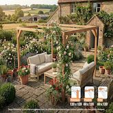 La pergola est fournie avec visserie et une notice claire. Montage à deux en environ 45 minutes, pour un espace extérieur unique.