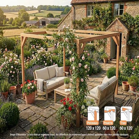 Pergola en bois lamellé-collé Caen 300 x 300 cm - Maderland