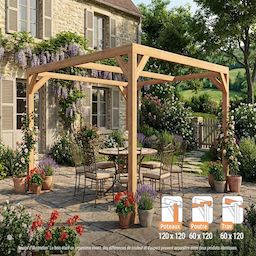 La pergola est fournie avec visserie et une notice claire. Montage à deux en environ 45 minutes, pour un espace extérieur unique.