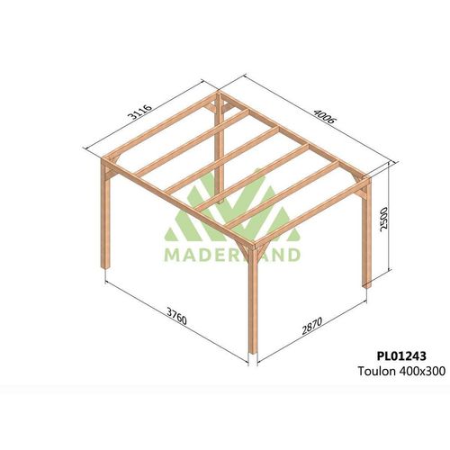 Pergola en bois lamellé-collé Toulon 400 x 300 cm - Maderland
