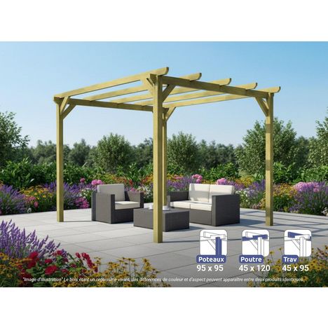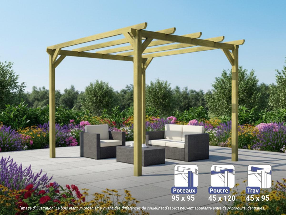 Pergola massive en bois Le Havre 300 x 300 cm - Maderland