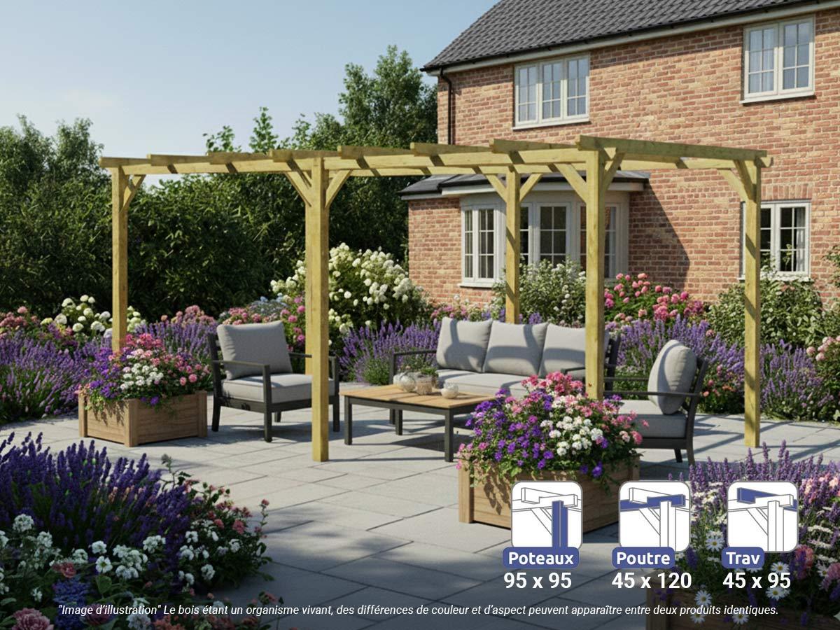 Pergola massive en bois Le Havre 600 x 300 cm - Maderland