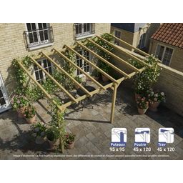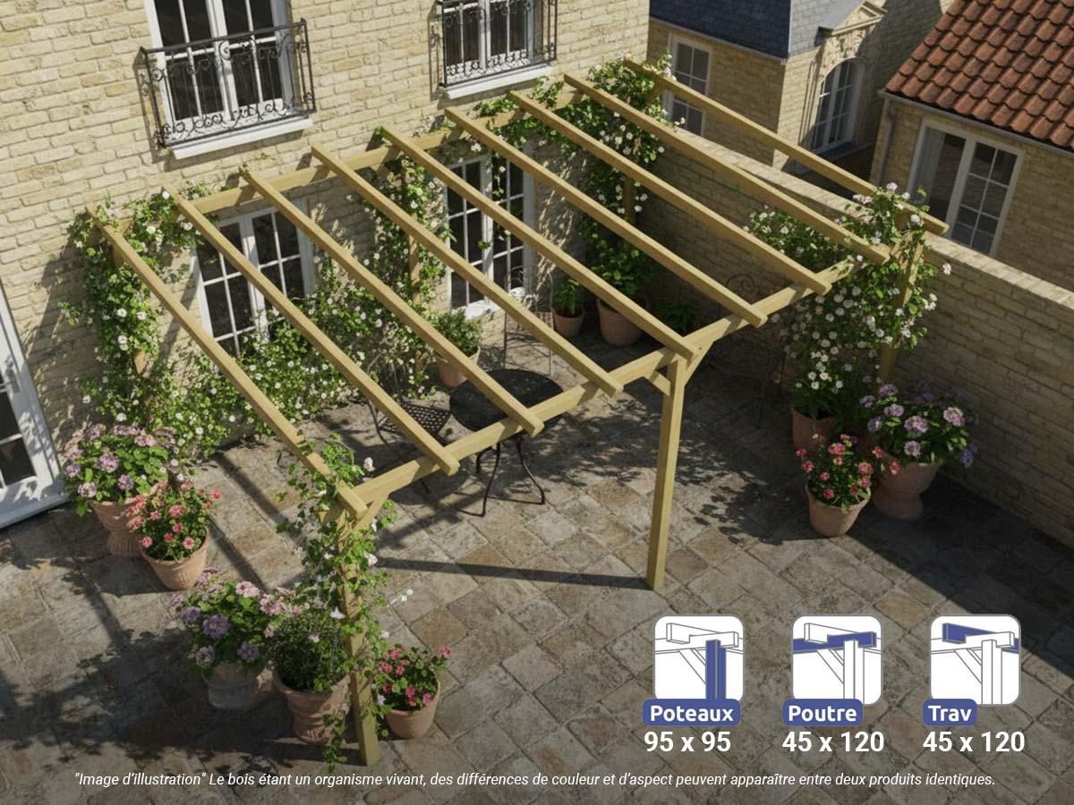 La pergola bois PARIS de Maderland est conçue en pin massif du Nord, dont la croissance lente assure une excellente résistance mécanique (flexion, compression, traction).