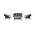 - Composition : 1 table + 2 fauteuils + 1 canapé