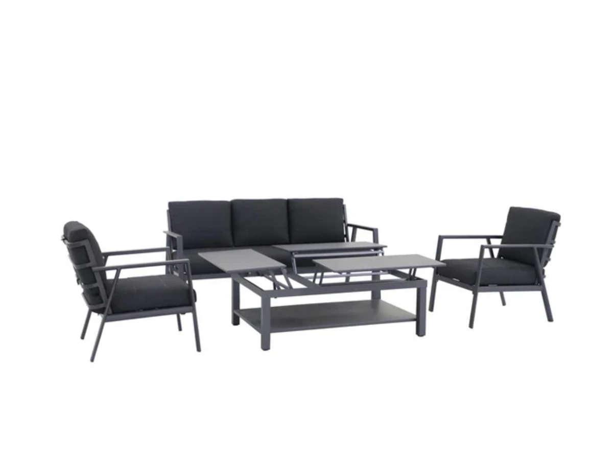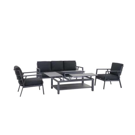 La table basse se distingue par ses trois plateaux relevables, permettant de moduler l'espace selon vos envies : apéritif entre amis, plateau repas ou espace de travail nomade en plein air. Le salon CATALINA allie design, confort et fonctionnalité pour transformer votre terrasse en véritable coin détente.