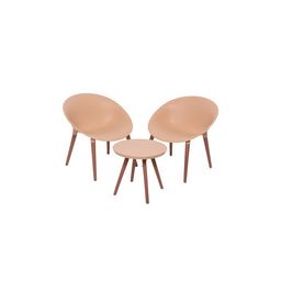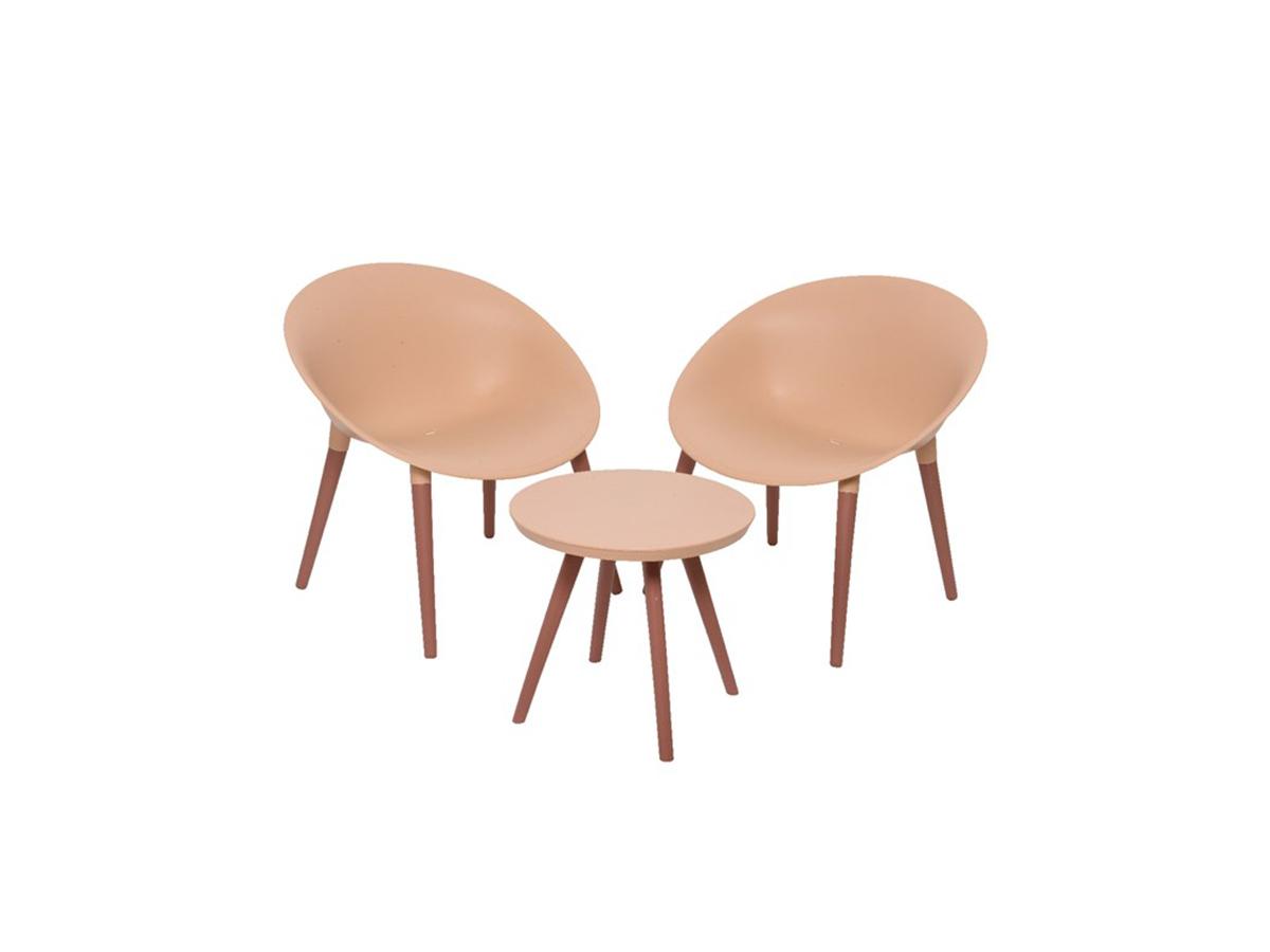 Le salon de jardin en plastique Marbella. Composé de 2 fauteuils de jardin et d'une table basse en polypropylène.