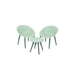 Le salon de jardin en plastique Marbella. Composé de 2 fauteuils de jardin et d'une table basse en polypropylène.