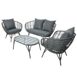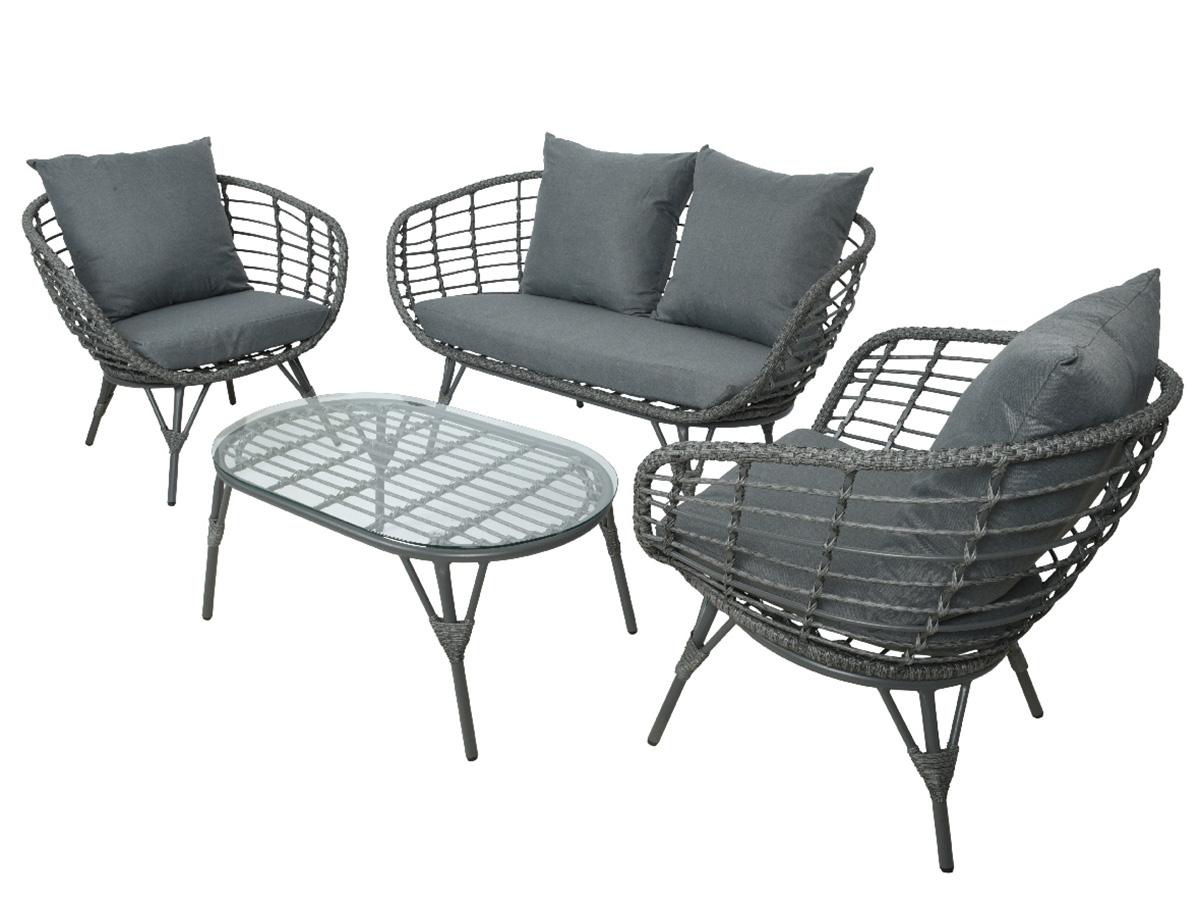 Salon de jardin en résine tressée gris Evora avec table basse - 4 places
