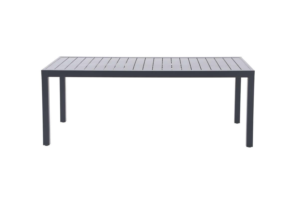 Table de jardin extensible OPPA XL, idéale pour recevoir famille et invités Système d'allonge coulissante élévatrice double rail, manipulation facile Structure et lattes en aluminium, résistantes aux intempéries Design moderne avec finition gris mat Dimensions fermée : 202,5 x 100 x 75 cm / ou