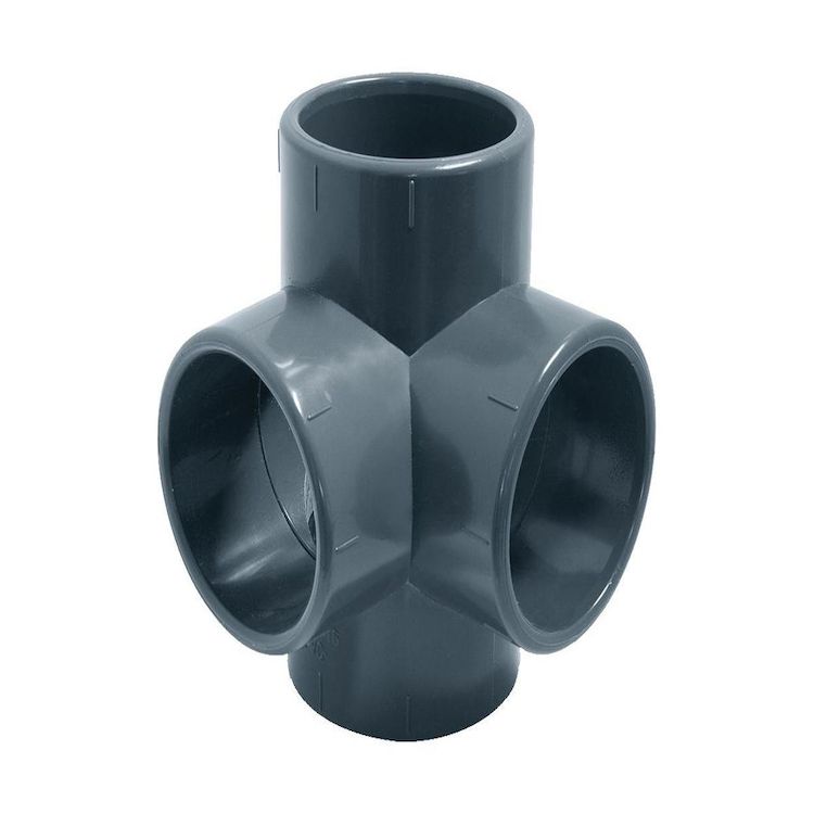 Pièce plomberie pour piscine. Té PVC 90° 4 voies Ø 50 mm - AquaZendo. Femelles à coller. Raccord de plomberie pour piscine en PVC PN16 BARS. Attestation de Conformité Sanitaire (ACS).Caractéristiques techniquesCouleur : GrisMarque : FITTMatière(s) : PVCRaccords : 50 mmType de produit : Té