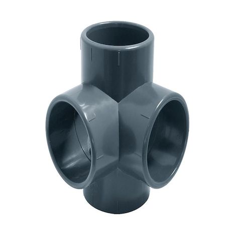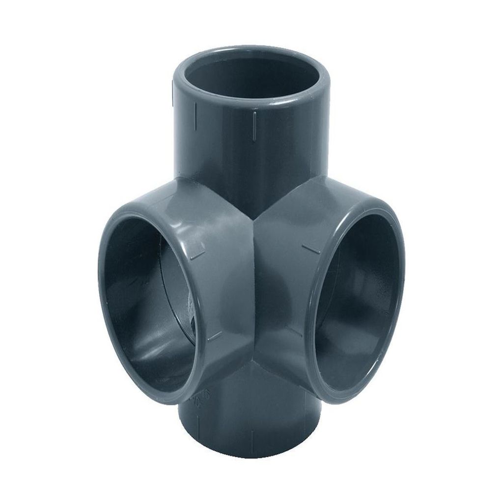 Pièce plomberie pour piscine. Té PVC 90° 4 voies Ø 63 mm - AquaZendo. Femelles à coller. Raccord de plomberie pour piscine en PVC PN16 BARS. Attestation de Conformité Sanitaire (ACS).Caractéristiques techniquesCouleur : GrisMarque : FITTMatière(s) : PVCRaccords : 63 mmType de produit : Té