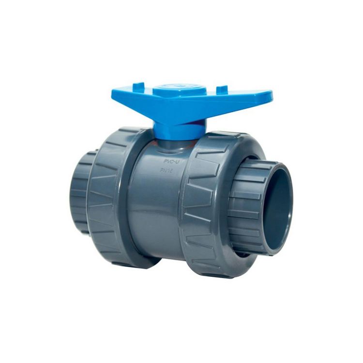 Vanne double union poignée bleue PVC pression Ø 50 mm - Fitt