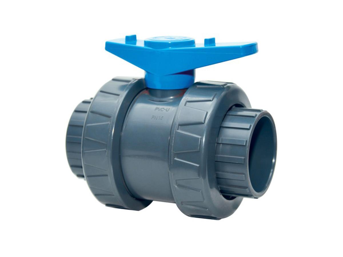 Vanne double union poignée bleue PVC pression Ø 63 mm - Fitt