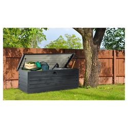 Le Coffre de Jardin Métal 600L en Gris Anthracite Premium offre une solution de rangement robuste et sophistiquée pour votre espace extérieur. Avec une capacité impressionnante de 600 litres, ce coffre métallique allie élégance et fonctionnalité, fournissant un espace spacieux pour ranger coussins,