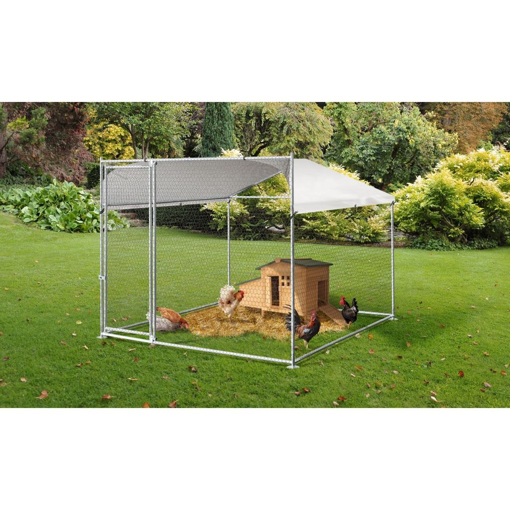 Protégez vos poules et autres petits animaux des prédateurs grâce à cet enclos ELDORADO de la marque Jardikit. Conçu en acier galvanisé, cet enclos sera très résistant face aux intempéries. Il possède un toit 100% polyéthylène résistant à l'eau et aux UV, offrant une protection contre le soleil, la