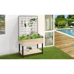 "Cette jardinière surélevée est idéale pour réaliser des compositions florales ou pour cultiver des fruits, légumes ou plantes aromatiques. Son treillis amovible est très utile pour la culture des plantes grimpantes. Grâce à son étagère, vous pourrez y entreposer terreau et outils de jardinage. Elle trouvera sa place sur votre terrasse ou votre balcon."