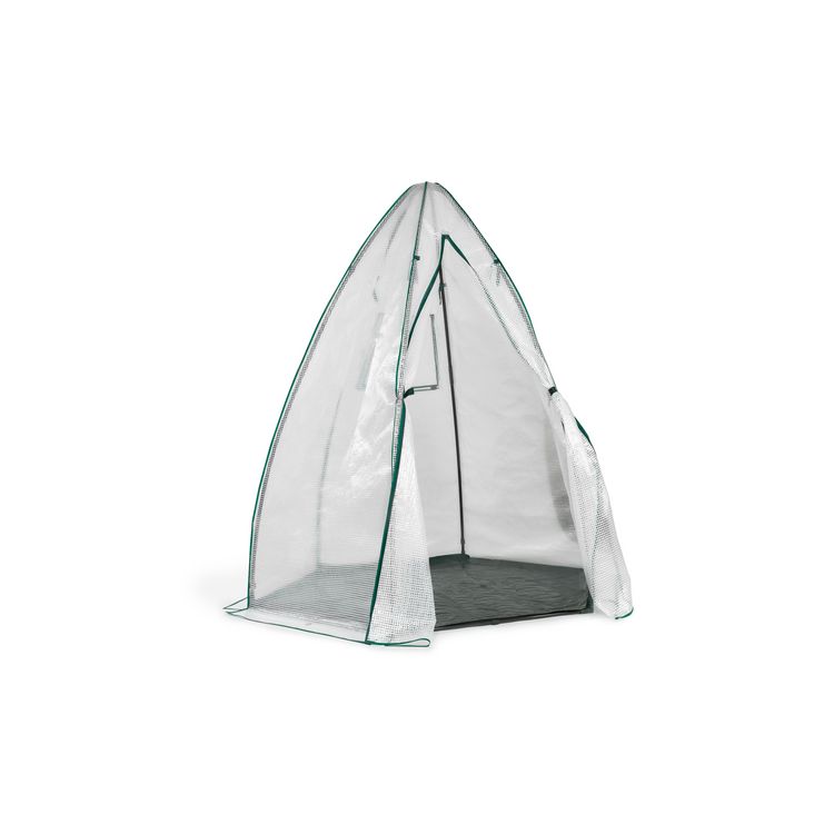 Dimensions : (L) 140 x (l) 140 x (H) 160 cm Matériaux bâche/couvercle : tissu Polyéthylène (PE) de 130 g/m² avec 1 porte + 1 fenêtre / Tube d'acier de 16 mm de diamètre avec revêtement en poudre Matériaux sol : tissu Polyéthylène (PE) de 90 g, avec attaches velcro avec attaches velcro pour fixer aux tubes Coloris sol : Vert