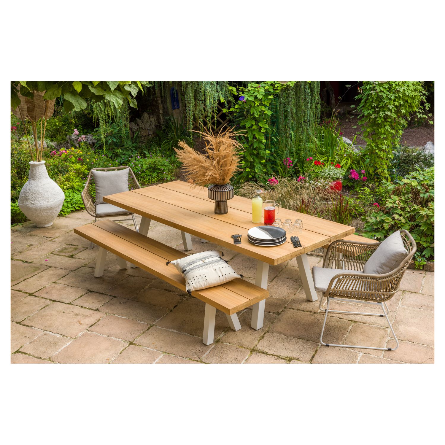 Banc de jardin - Aluminium/Bois - Blanc/Teck - SEYCHELLES