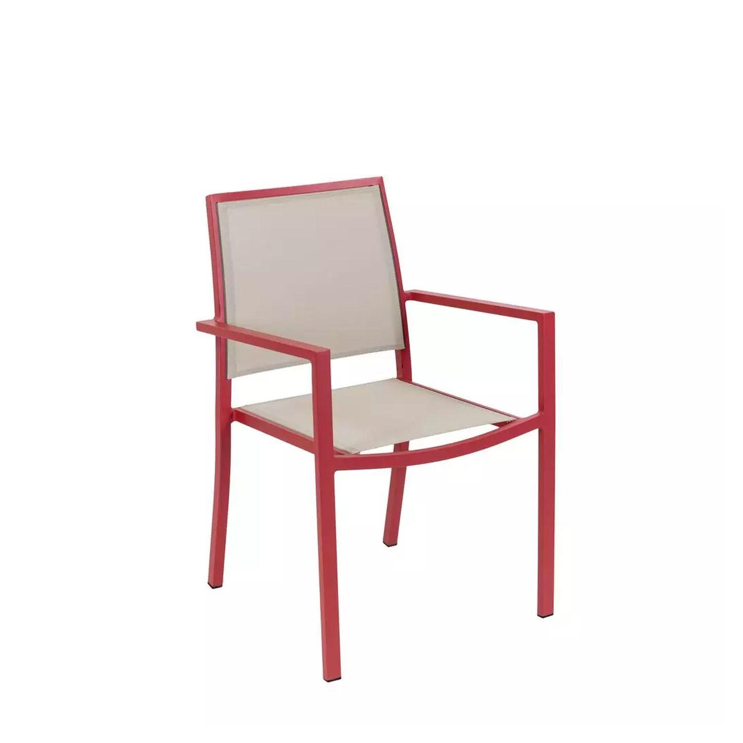 Fauteuil de jardin empilable Santorin coloris terracotta JARDILINE en aluminium. Assise et dossier en textilène . Dimensions 58 x 55 x 85 cm.