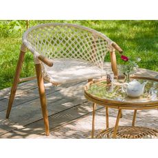 Le fauteuil de jardin Rodrigues : macramé 100% coton et bois de teck