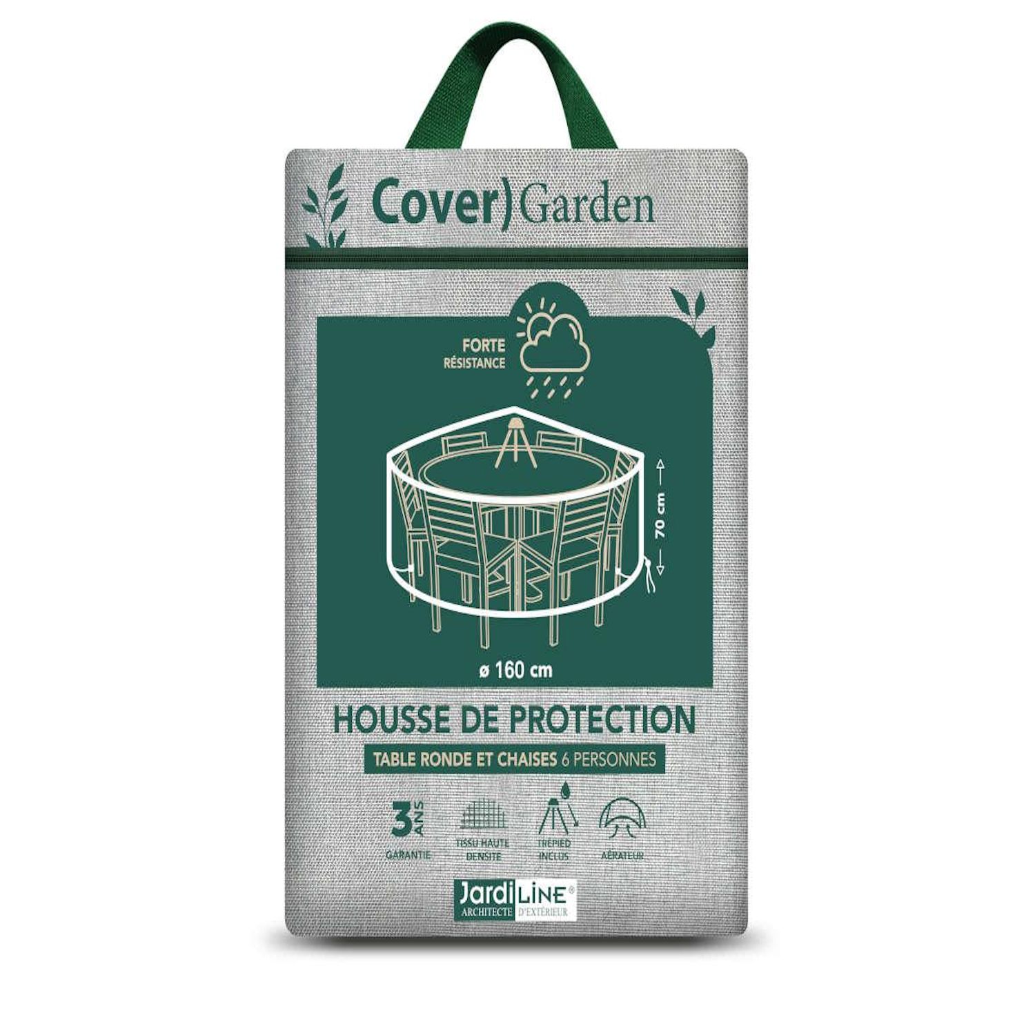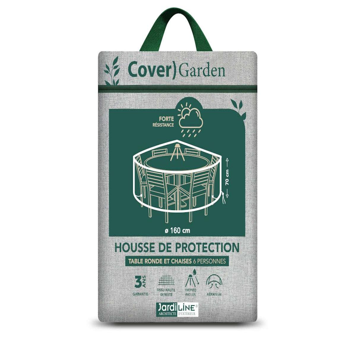 Housse de protection Cover Garden pour table ronde 6 personnes+ chaises, avec trépied - Ø160 x 70 cm - Jardiline