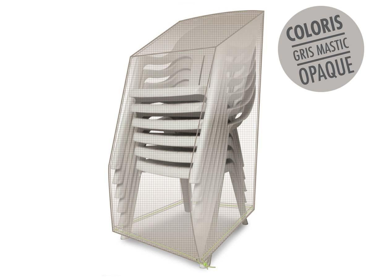Housse/Bâche de protection pour chaises empilées. La housse de protection pour piles de chaises de jardin est un accessoire indispensable pour protéger vos chaises des intempéries et des rayons UV. Cette housse est spécialement conçue pour protéger vos piles de chaises de jardin tout au long de l'an