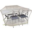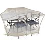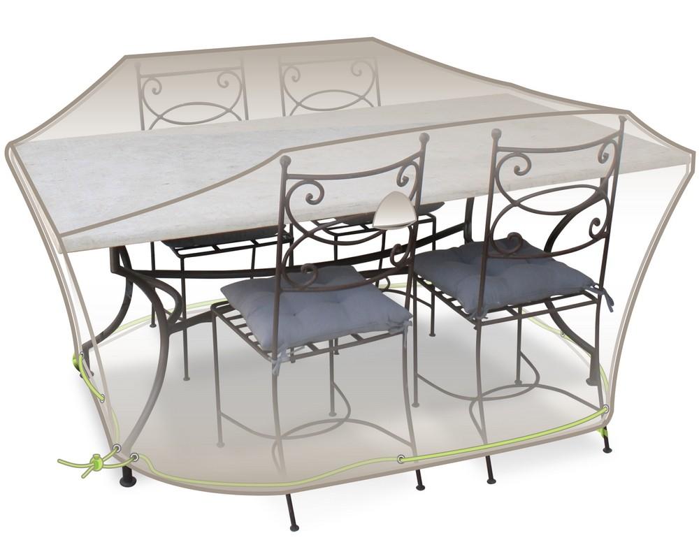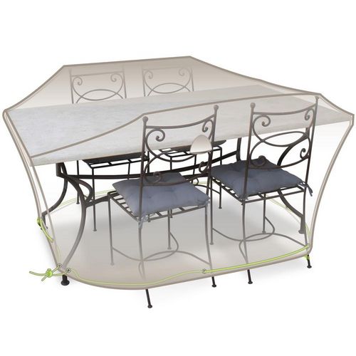 Jardiline CLS01 La housse de table rectangulaire et chaises 4 à 6 personnes Jardiline CLS01 est spécialement conçue pour protéger une table 4/6 personnes et 4 chaises contre la pluie, la pollution, et les rayonnements du soleil. 100% Imperméable, coutures étanches, sangle + cordon + oeillets. Aérate