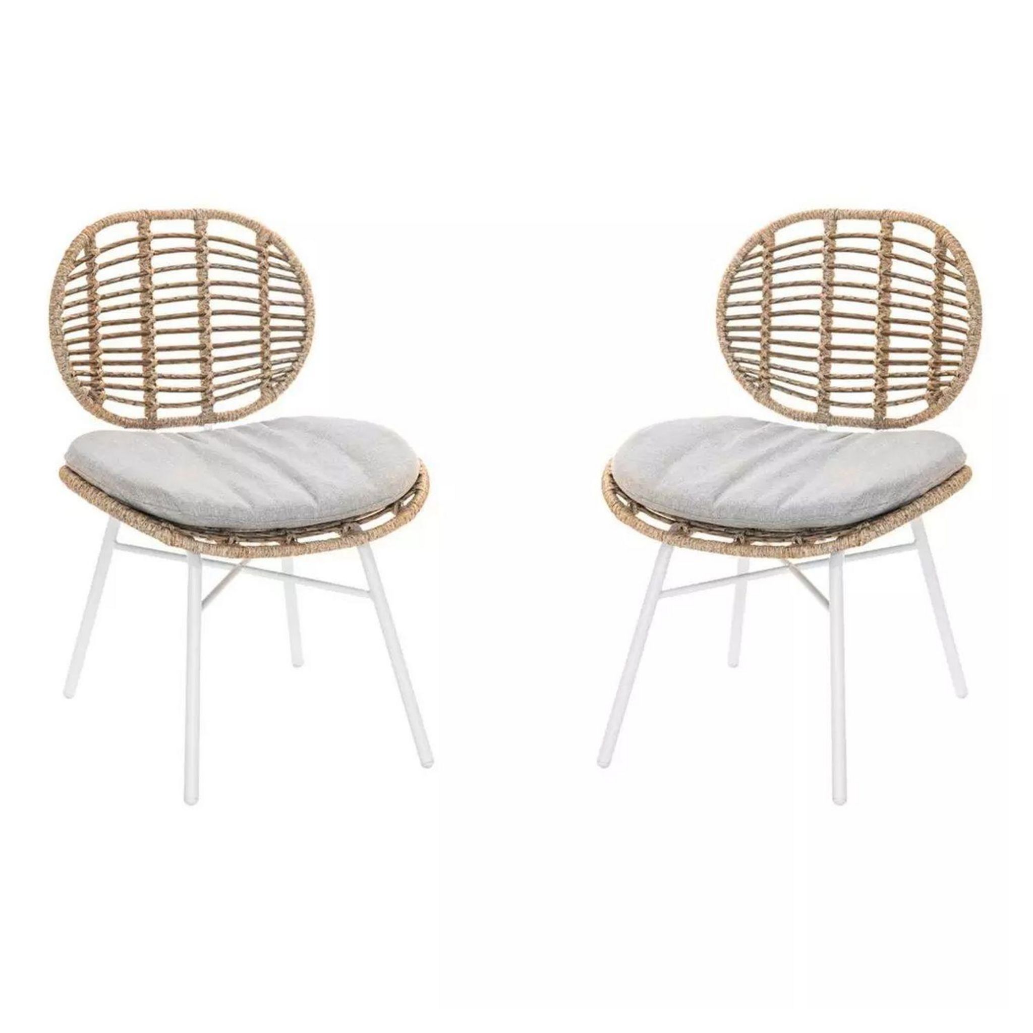 Lot de 2 chaises de jardin - Résine tressée - Beige - FLORES