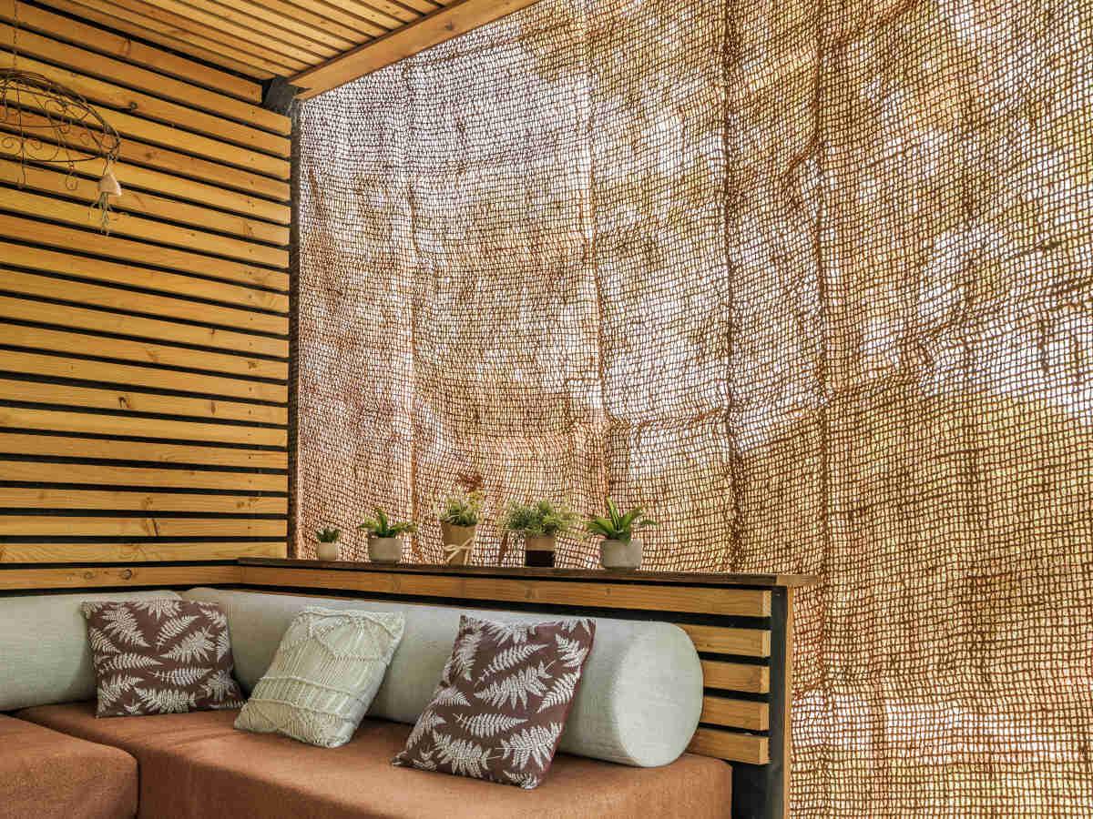 L'ombrière rectangulaire en fibres de coco naturelle combine durabilité et esthétique. Elle résiste aux intempéries et ajoute une touche naturelle à votre espace extérieur.