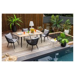 Salon de jardin - 4 places - Aluminium/Bois - Noir - COMORES