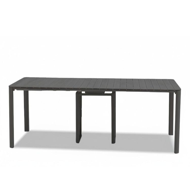 Au quotidien, ce modèle se présente sous la forme d'une console élégante de seulement 62 cm de profondeur, idéale pour circuler librement sur votre balcon ou votre jardin. Dès que les invités arrivent, son système d'extension fluide permet de déployer une surface de réception généreuse pouvant atteindre 3,72 mètres de long.