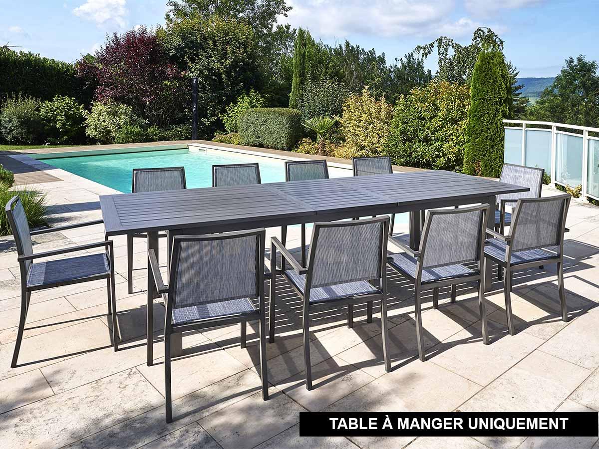 Table rectangulaire extensible en aluminium aspect teck gris SANTORIN - 10 places - Jardiline