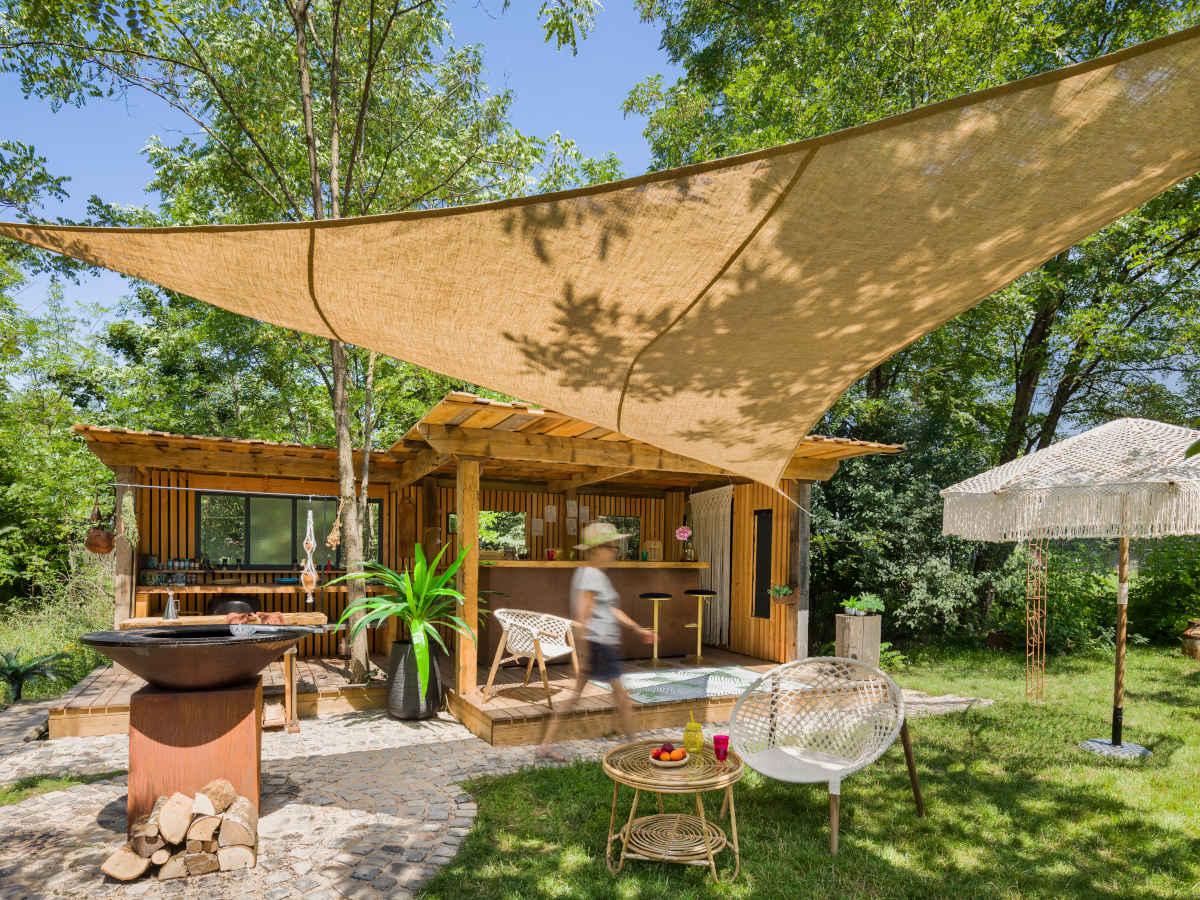 Disponible en trois dimensions (3 m, 3,60 m et 5 m), elle s'adapte à différents espaces extérieurs et peut être lavée à la main.