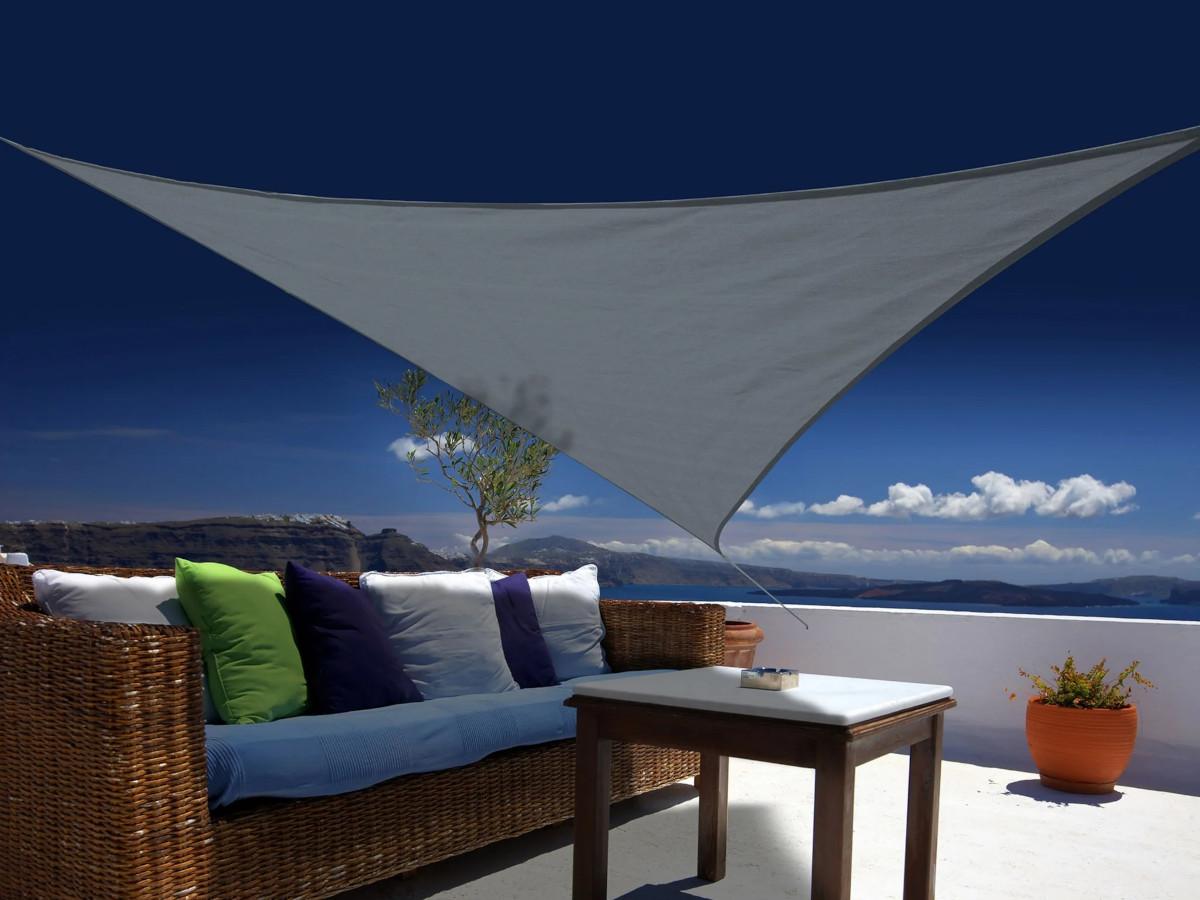 Toile solaire triangle terrasse en polyéthylène. Avec ceinture de renfort et anneaux inox. Filtre 90% des UV. Plusieurs couleurs dispsonibles.